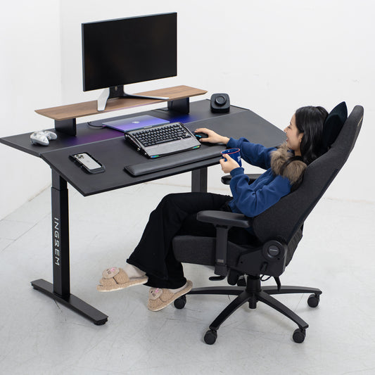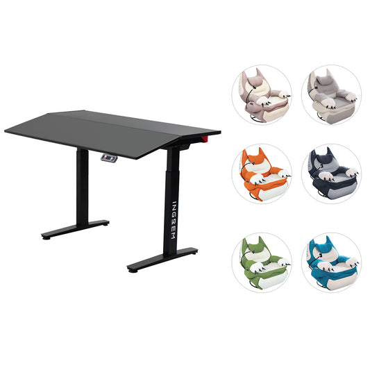 Recliner + tilt-adjustable desk